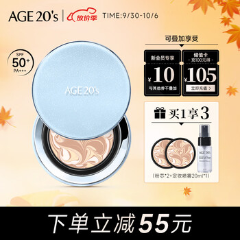 爱敬(age20's)星空黑气垫bb霜/粉底霜/粉底液13号浅肤色14g*2隔离防晒SPF50+遮瑕修颜持久定妆提亮圣诞节礼物 -