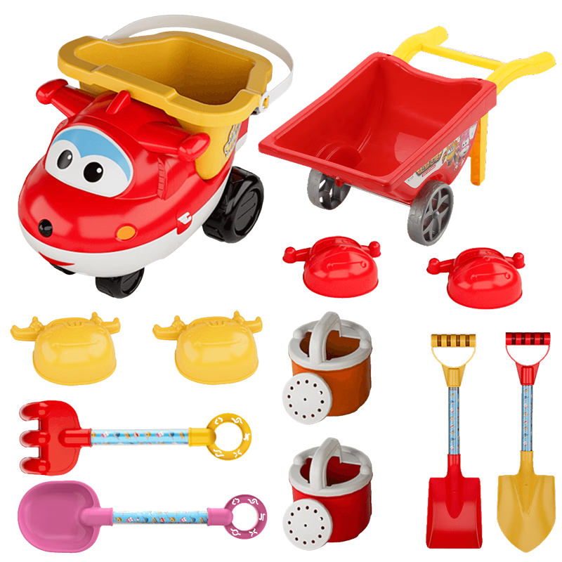 恩贝家族 超级飞侠儿童玩沙戏水沙滩玩具套装户外玩具男孩堆雪人工具挖玩沙铲雪工程推车决明子沙漏12件套