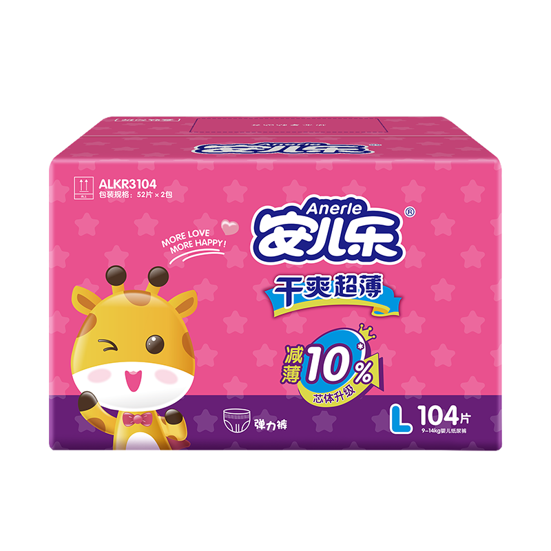 安儿乐拥有丰富多样的产品线,主要涵盖婴儿纸尿裤、湿巾等必备母婴用品。无论是新生儿还是成长中的宝宝,安儿乐都能提供贴合不同成长阶段需求的产品。