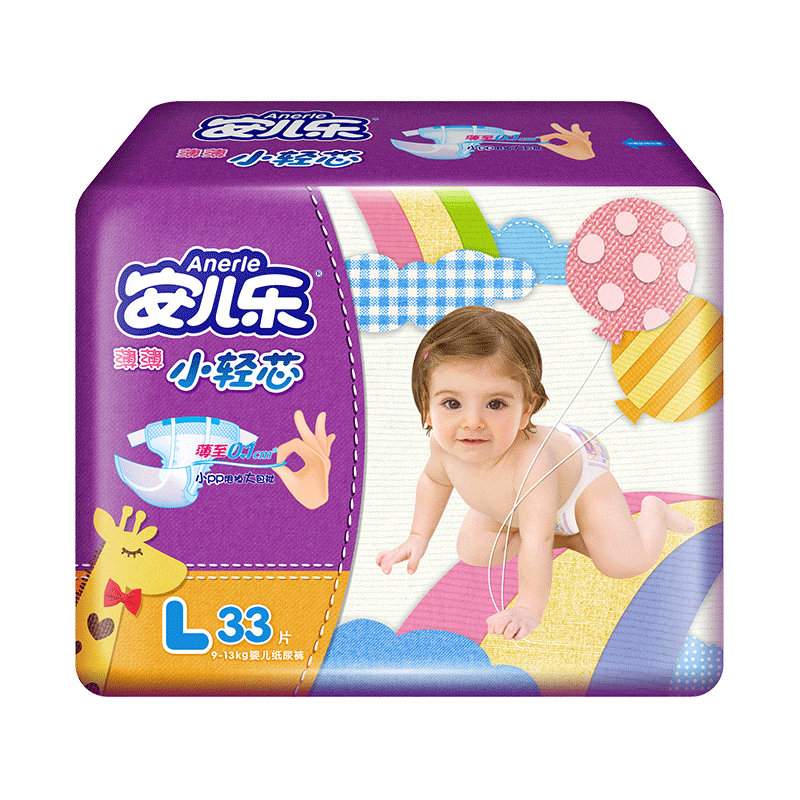 安儿乐ANERLE小轻芯纸尿裤L33片(9-14kg)婴儿超薄透气尿不湿