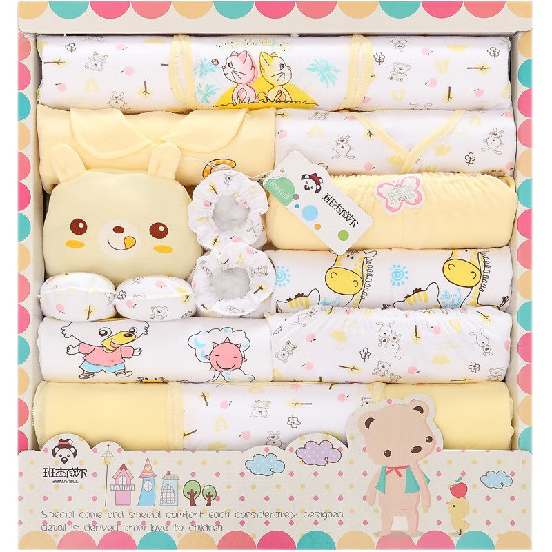 班杰威尔婴儿礼盒新初生儿衣服春秋冬款衣服套装纯棉刚出生婴儿满月宝宝用品 晴天熊 黄色 新生儿(0-6个月) -