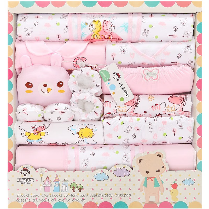 班杰威尔婴儿礼盒新初生儿衣服春秋冬款衣服套装纯棉刚出生婴儿满月宝宝用品 粉色(四季款) 新生儿(0-6个月) -
