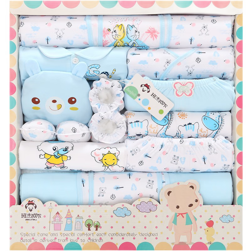 班杰威尔婴儿礼盒新初生儿衣服夏季衣服套装纯棉刚出生婴儿满月宝宝用品 晴天熊 蓝色(四季款) 新生儿(0-6个月) -