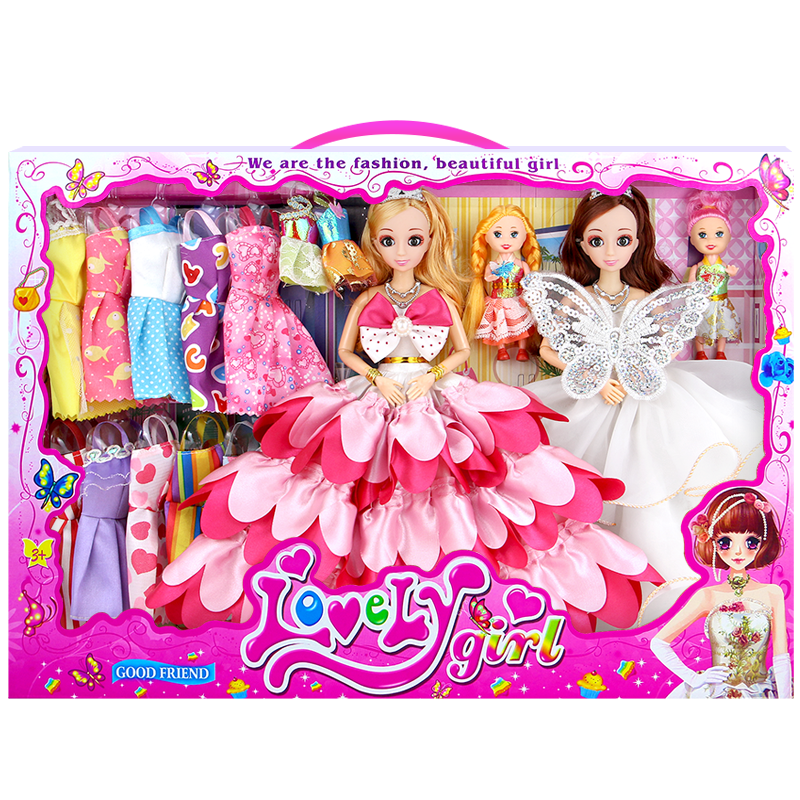 【音乐眨眼】乐加分芭比娃娃套装大号礼盒换装洋娃娃巴比小公主儿童玩具女孩3-4-6-10过家家生日礼物 【音乐故事眨眼A款】2大2小娃娃+12关节可动 -