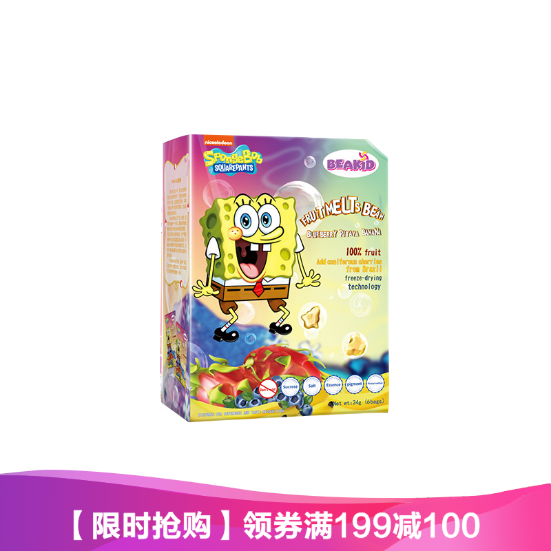 beakid 美国Beakid海绵宝宝溶豆 儿童磨牙棒饼干宝宝零食溶豆 蓝莓火龙果香蕉味