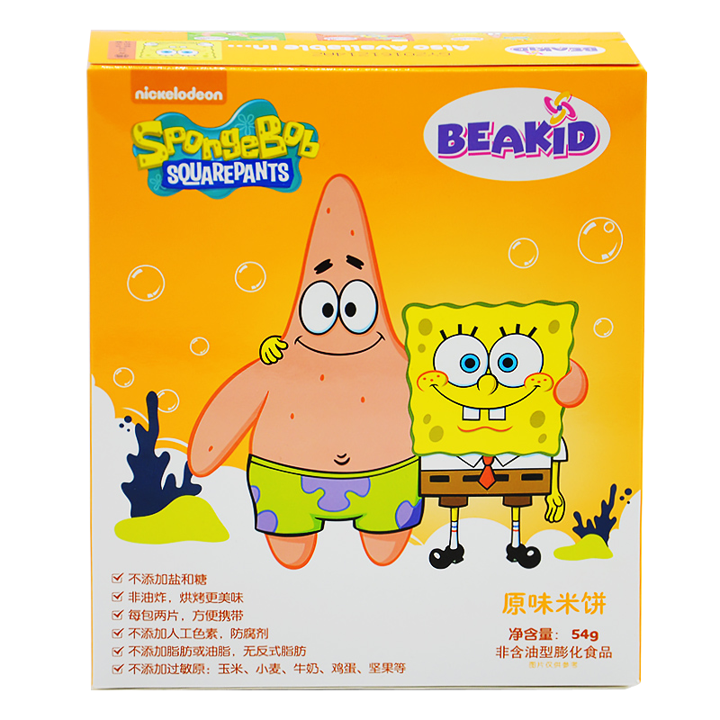 beakid 海绵宝宝米饼不添加白砂糖和食盐儿童零食54g 儿童零食米饼苹果南瓜味