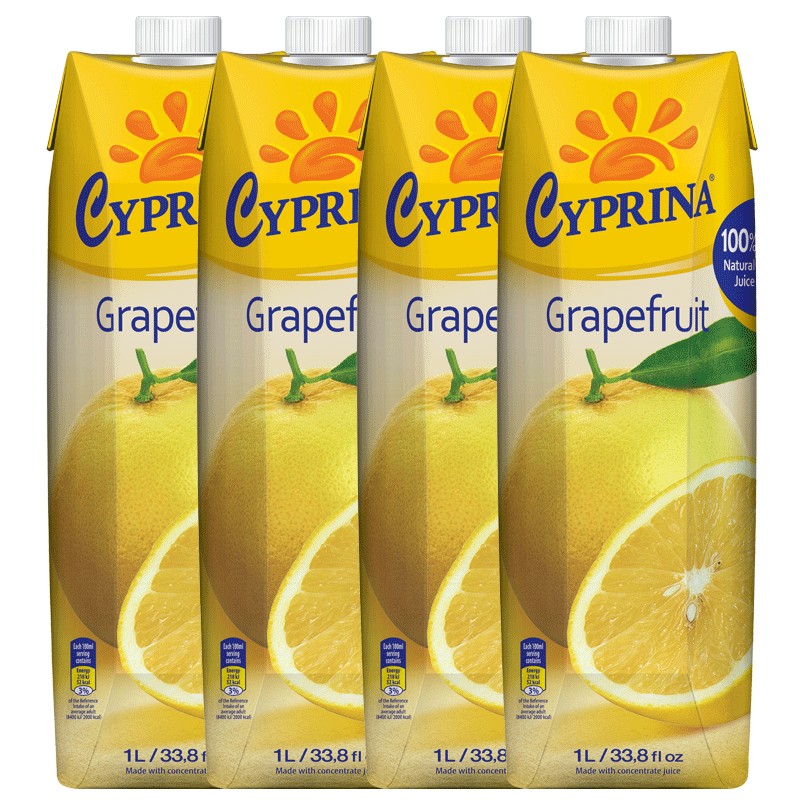 地中海塞浦路斯进口 塞浦丽娜(Cyprina)葡萄柚果汁 1L*4瓶 果汁饮料 整箱
