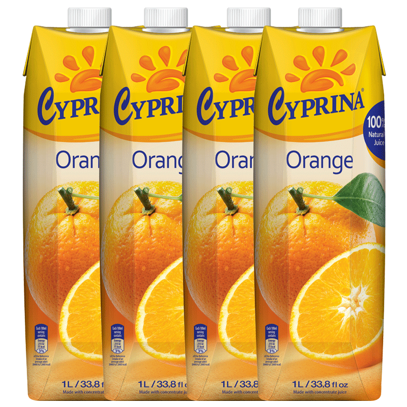 地中海塞浦路斯进口 塞浦丽娜(Cyprina)橙汁 1L*4瓶 果汁饮料 整箱 -
