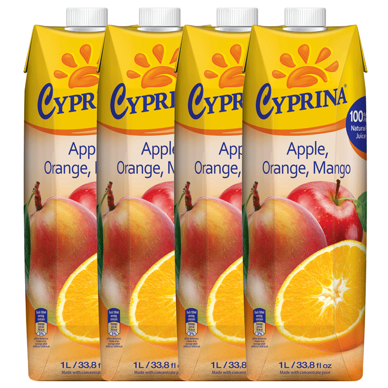 地中海塞浦路斯进口 塞浦丽娜(Cyprina)芒果香橙苹果混合100%果汁 1L*4瓶 果汁饮料 整箱 -