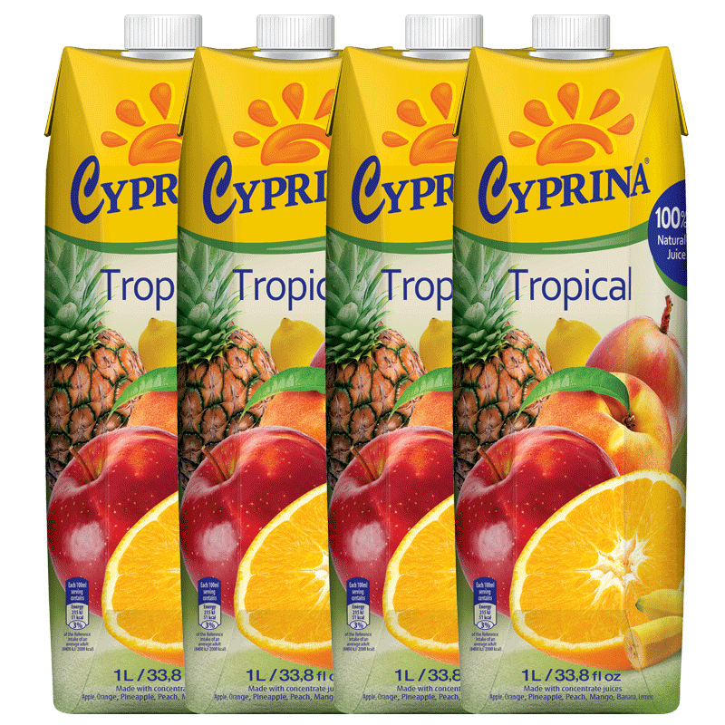 地中海塞浦路斯进口 塞浦丽娜(Cyprina)热带果汁 1L*4瓶 果汁饮料 整箱 -