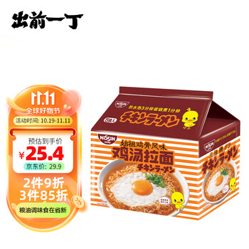 出前一丁日清 始祖鸡骨风味鸡汤拉面85g*5包速食泡面煮面方便面