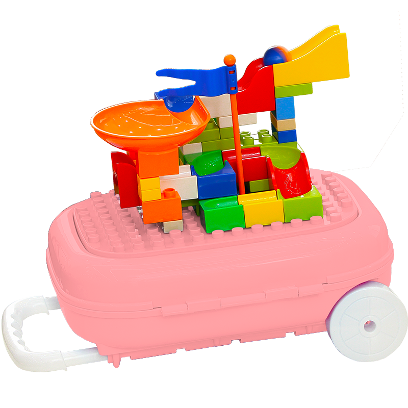 【京喜工厂】海豚岛 滑道积木大颗粒积木桌子行李箱儿童玩具男孩女孩积木玩具拼插拼装积木拉杆箱玩具 【出游便携收纳】33Pcs积木轨道_粉色行李箱套装 -