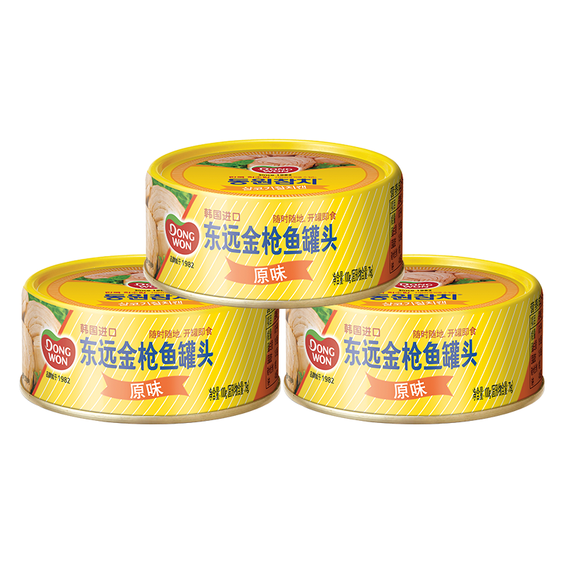 韩国 东远 金枪鱼罐头 原味100g*3罐 -
