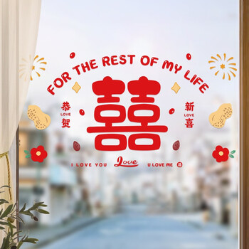 梦桥 喜字贴 大号创意结婚订婚婚房布置装饰卧室大门墙贴静电玻璃窗贴 -