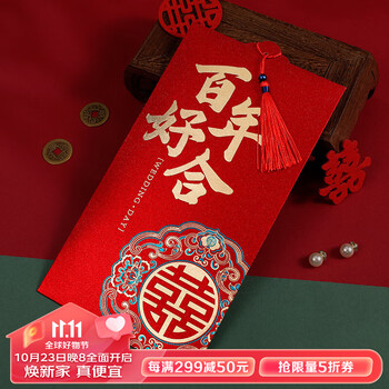 梦桥 红包袋 结婚用品婚庆喜字聘金礼金礼物1万元利是封特大号 -