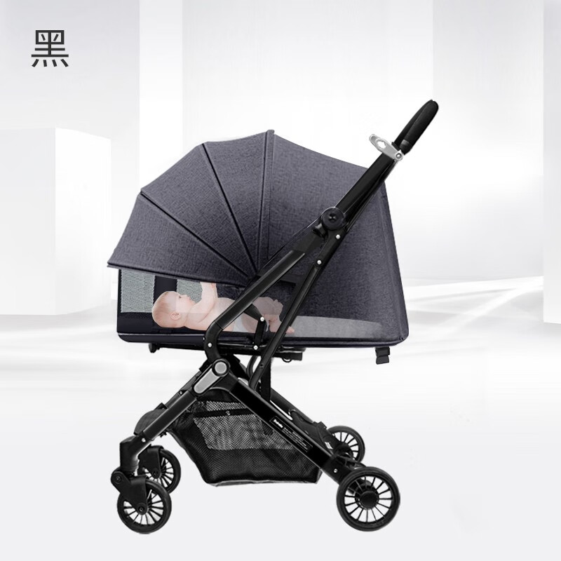 【品牌联合elittile联合dubelle】婴儿推车轻便可坐可躺加宽座舱伞车宝宝推车 黑色+双向睡篮版 -
