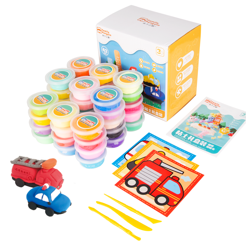 亲子企鹅 橡皮泥超轻粘土彩泥黏土太空泥男孩女孩生日礼物手工DIY玩具 42杯彩盒装