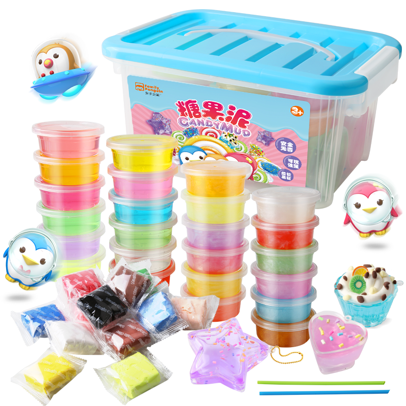亲子企鹅 水晶泥起泡胶史莱姆橡皮泥 男女孩生日礼物儿童玩具 24色水晶泥+12色粘土