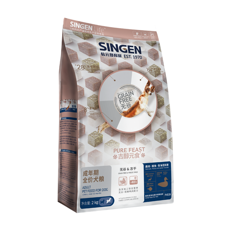 Singen信元发育宝 吉醇元食鹿肉鲽鱼青海苔成犬专用粮2kg 无谷低敏冻干肉粒泰迪比熊天然狗粮4斤 -