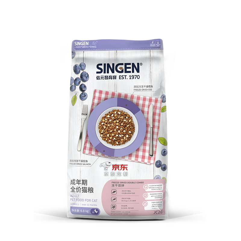 京东JOY联名定制款 Singen信元发育宝 冻干双拼成猫粮6.8kg 宠物英短美短加菲猫通用鱼肉天然粮 -