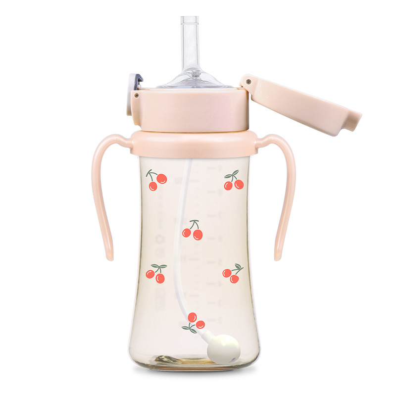 新款格罗咪咪Grosmimi吸管杯婴儿童学饮杯PPSU进口宝宝喝奶水杯防漏防摔 樱花粉300ML -