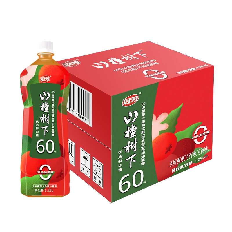 冠芳山楂树下1.25L*6瓶60%山楂果汁果肉饮料浓度不添加蔗糖整箱装 -