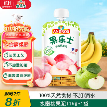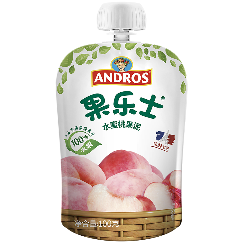 果乐士水蜜桃100%果泥100g果汁泥蔬果泥不添加浓缩果汁、糖、盐 -