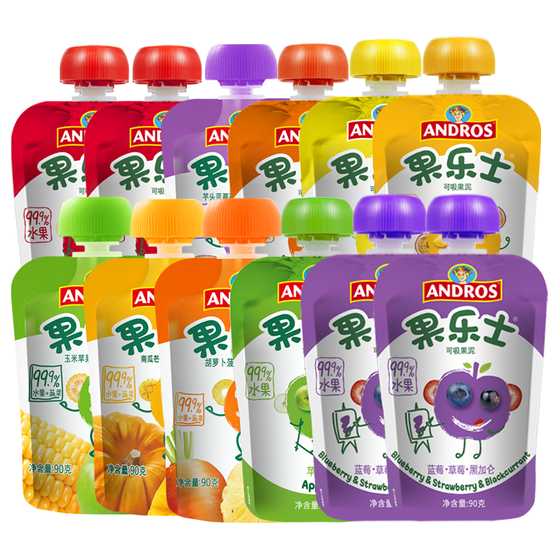 果乐士 99.9%蔬果含量水果蔬菜全口味超值礼盒套装90g*12水果泥果蔬泥 -