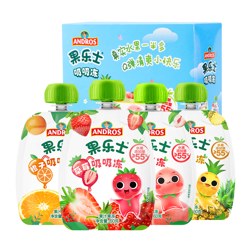果乐士 缤纷4口味吸吸冻90g*4果冻布丁果汁(浆)大于90%无香精、色素、防腐剂、盐儿童零食 -