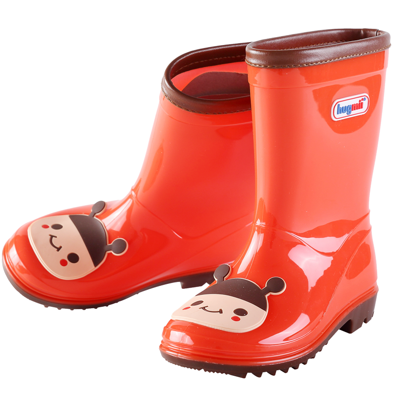 hugmii儿童雨鞋男童女童宝宝时尚卡通贴片小孩防滑水鞋 -