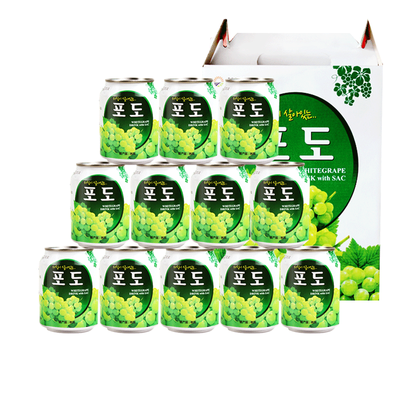 韩国原装进口 九日(JIUR)葡萄果肉果汁饮料 238ml*12罐 果汁礼盒装 -