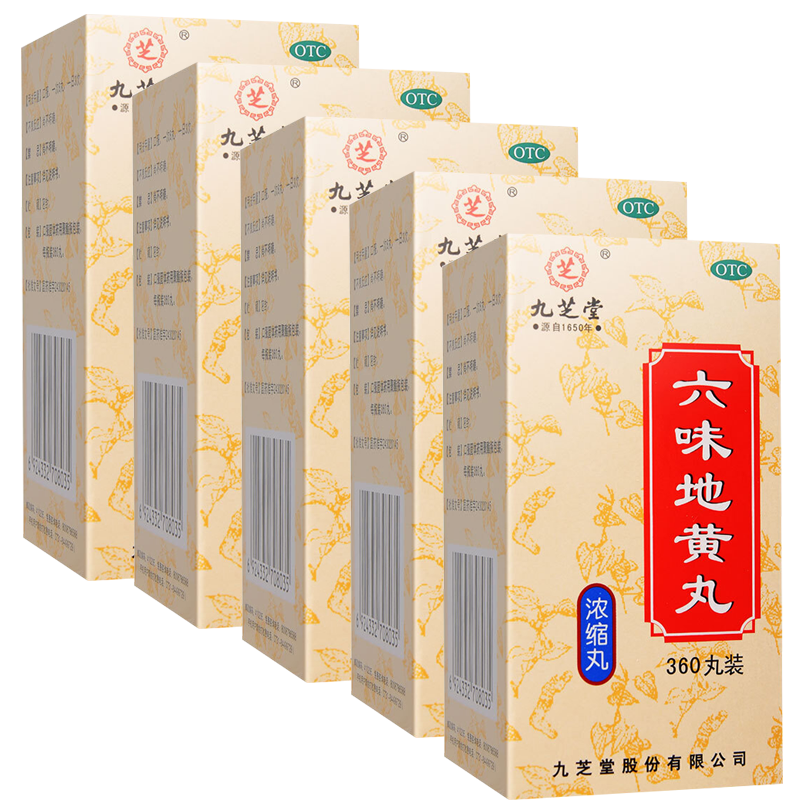 九芝堂 六味地黄丸(浓缩丸)360丸*5盒 滋阴补肾 肾阴亏损 头晕耳鸣 腰膝酸软 遗精疗程装中成药品