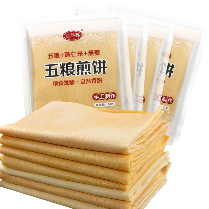 吉朱大福 吉胜鑫 五粮煎饼100g*4包 方便食品 手工煎饼 东北大煎饼果子 早餐代餐饼粗粮 -