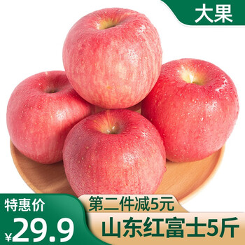 第二件9.9 2件带箱合发10斤 烟台红富士苹果5斤 时令新鲜水果生鲜 特大果(果径约85-90mm) 新鲜苹果