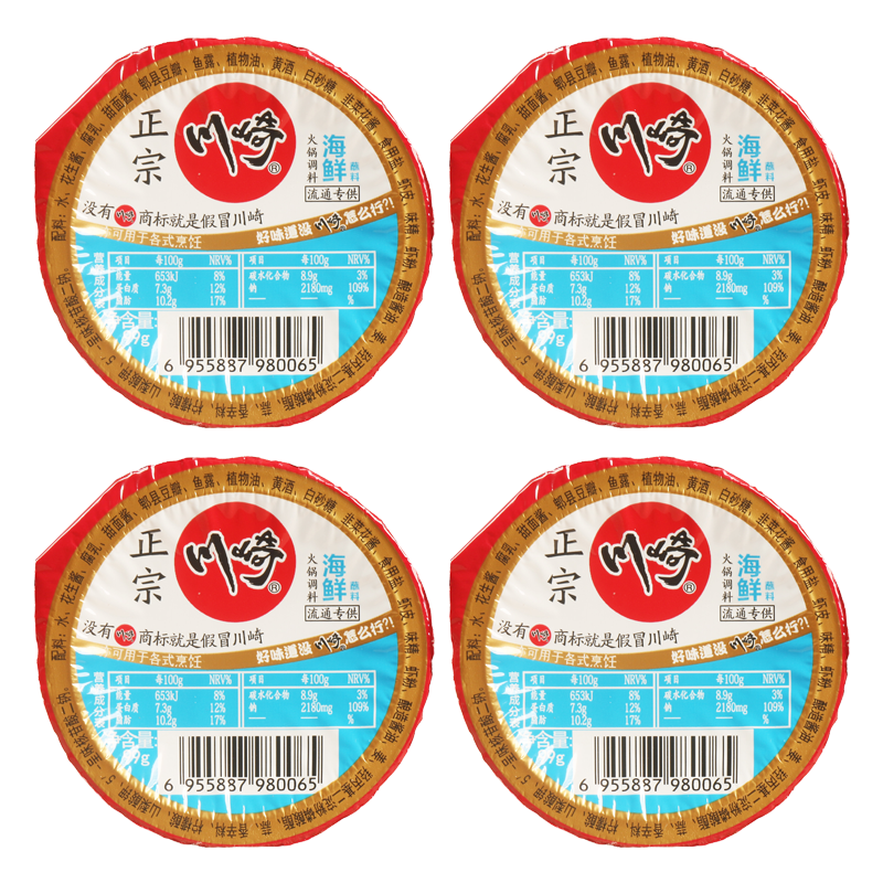 川崎 火锅蘸料 热销组合400g(麻辣100g*1+海鲜100g*1+美味(番茄味)100g*1+鲜辣100g*1)量贩装 三十年品牌100039062357 -