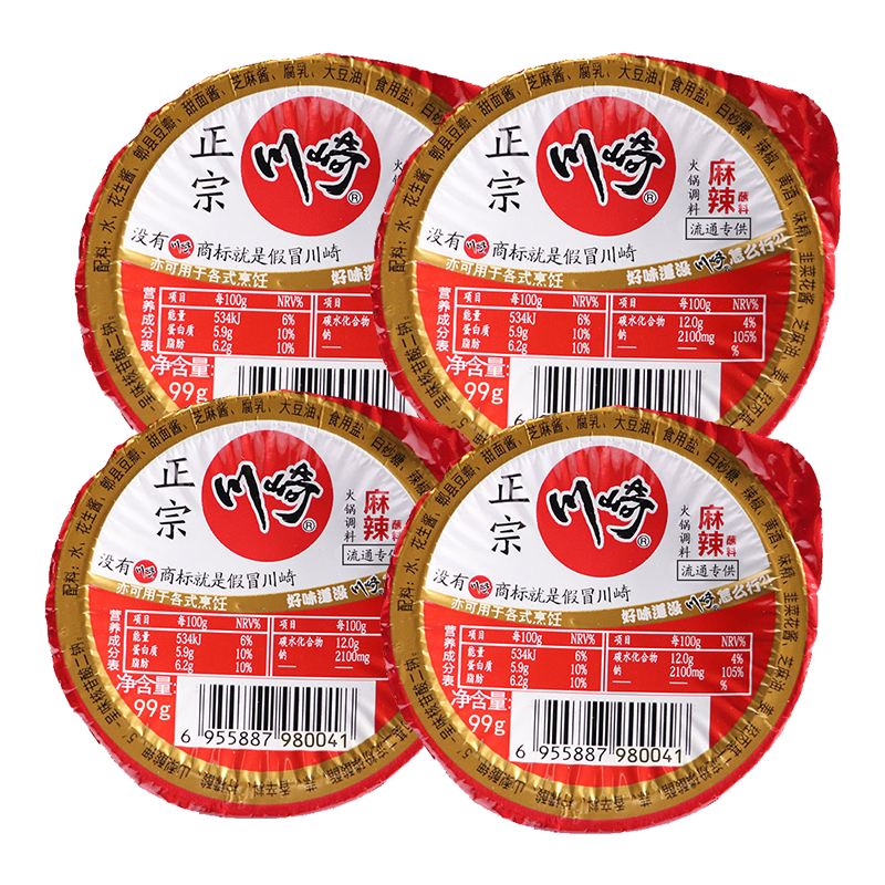 川崎 麻辣味火锅蘸料 99g*4/盒 火锅底料食材花生芝麻酱 凉拌菜烧烤家用调味料 -