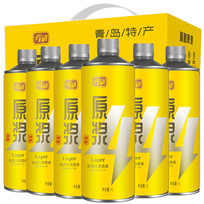 青岛亮动精酿原浆啤酒1L*6桶整箱礼盒装全麦扎啤小麦白啤酒国产经典酷爽黄啤多种风味 亮动拉格黄啤1L*6桶 -