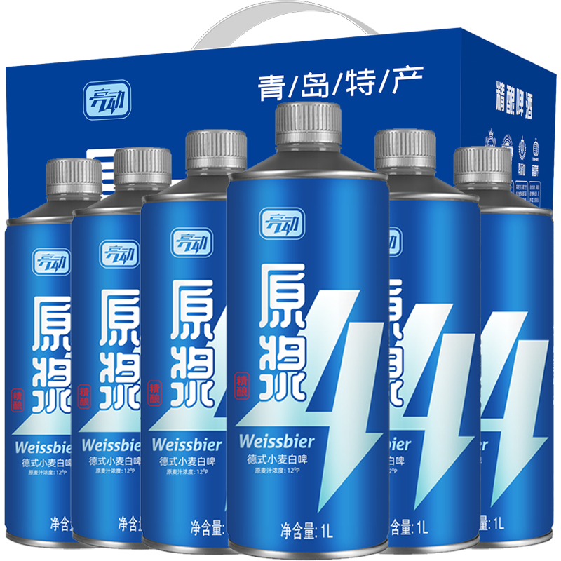 青岛亮动精酿原浆啤酒1L*6桶整箱礼盒装全麦扎啤小麦白啤酒国产经典酷爽黄啤多种风味 亮动小麦白啤1L*6桶 -