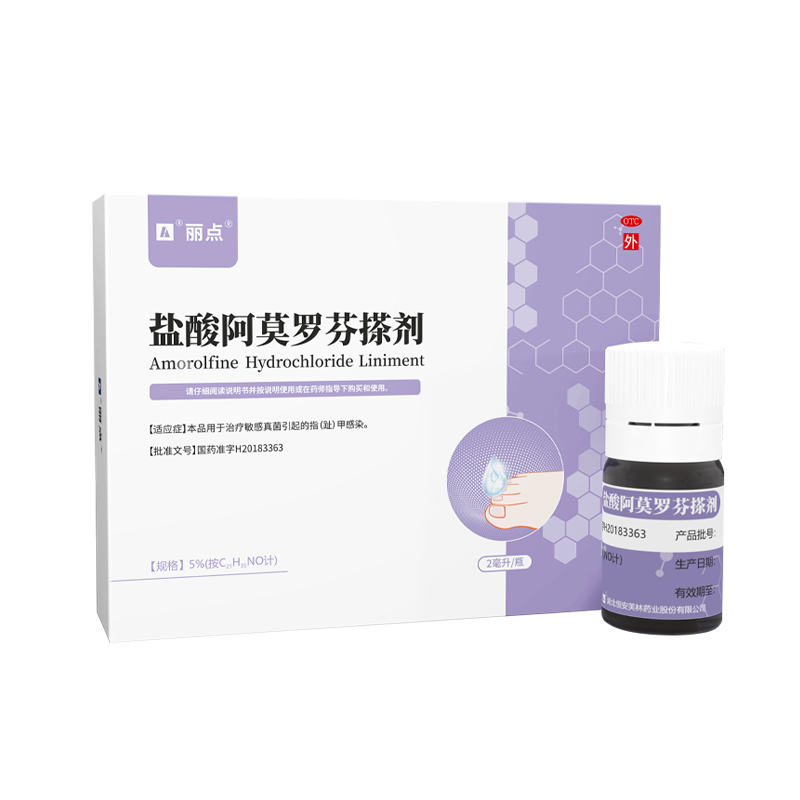 丽点盐酸阿莫罗芬搽剂5%*2ml/瓶治疗敏感真菌引起的指趾甲感染(灰指甲)专用药100025429777