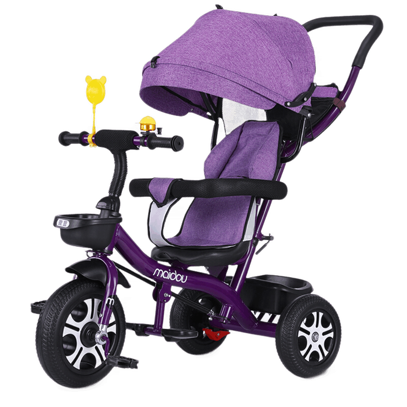 麦豆 儿童三轮车推车轻便遛娃神器宝宝脚踏车婴幼儿1-3-6岁玩具儿童多功能三轮车 普通款紫色+安全带+免充气轮 -