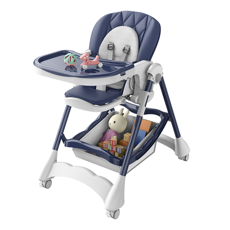 摩米特餐椅 宝宝餐椅 婴儿餐椅 儿童餐椅 吃饭座椅 餐桌 多功能 可坐可躺 升级材质 藏青色+多档调节可坐可躺+食品级双餐盘 -