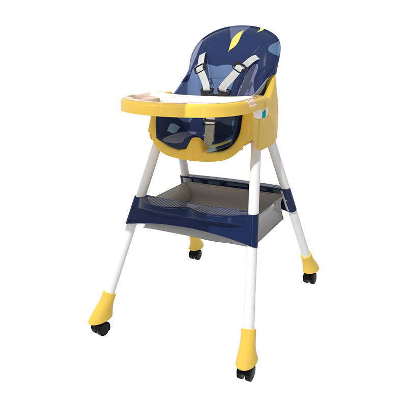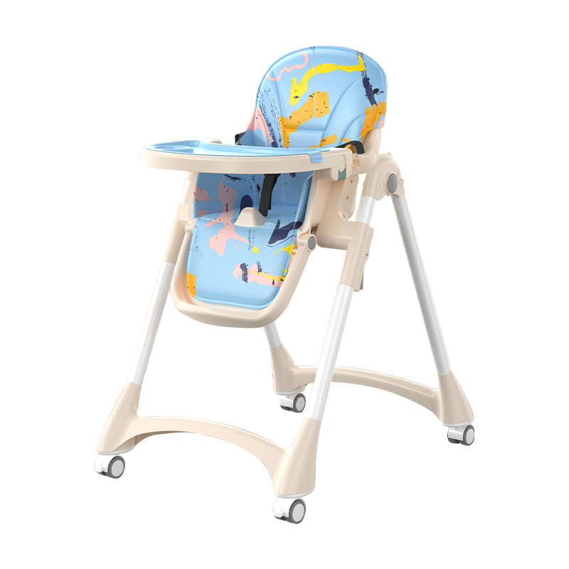摩米特 宝宝餐椅婴儿餐椅多功能吃饭可折叠安全座椅宝宝椅儿童座椅哄娃神器 便携式多功能可伸降学坐椅 马蹄款餐椅 王子蓝【静音万向轮+座椅高低6档调节】 -