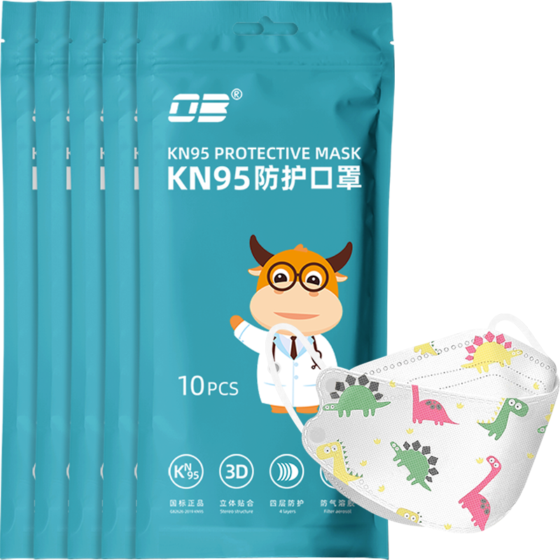 OB专业防护口罩 KN95口罩 防飞沫防气溶胶口罩 一次性防工业粉尘防花粉口罩 透气款男女通用 OB专业KN95口罩50只[儿童小恐龙]能防气溶胶10052419790392