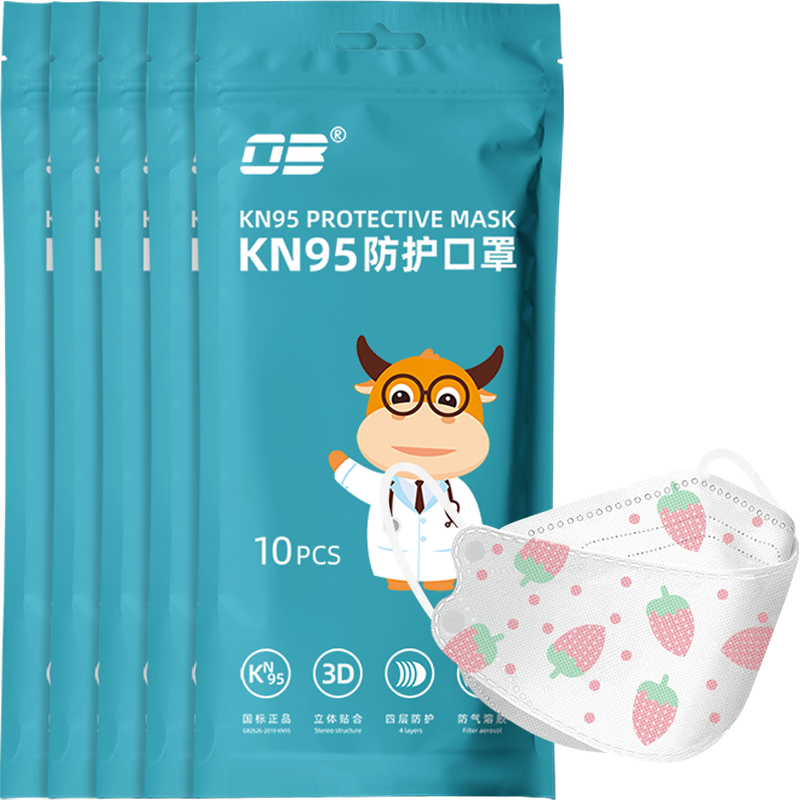 OB专业防护口罩 KN95口罩 防飞沫防气溶胶口罩 一次性防工业粉尘防花粉口罩 透气款男女通用 OB专业KN95口罩50只[儿童小草莓]能防气溶胶10052419790393