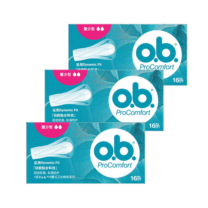 ob内置卫生棉条姨妈棉棒日用夜用游泳适用卫生巾德国进口内置式姨妈卫生巾月经 量少型16支*3盒