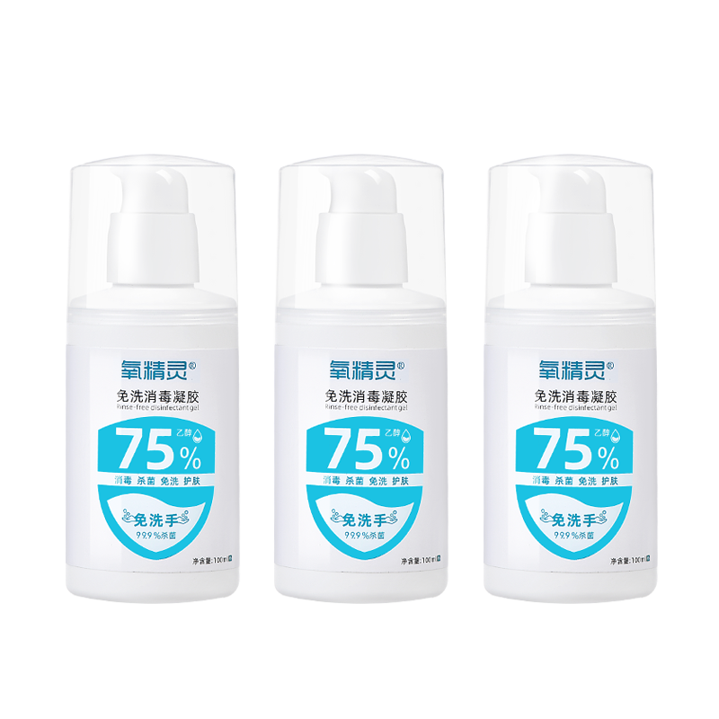氧精灵免洗洗手液100ml*3瓶便携75%酒精免洗凝胶儿童开学外出出差杀菌消毒液 -
