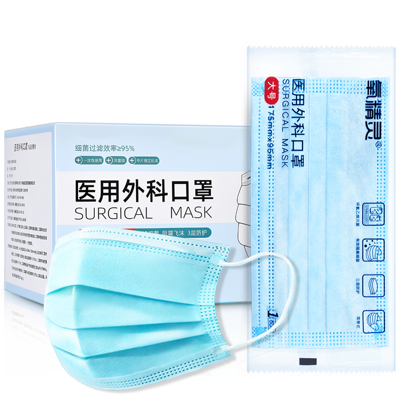 氧精灵 一次性医用外科口罩无菌三层外科灭菌 50只独立包装/盒 -