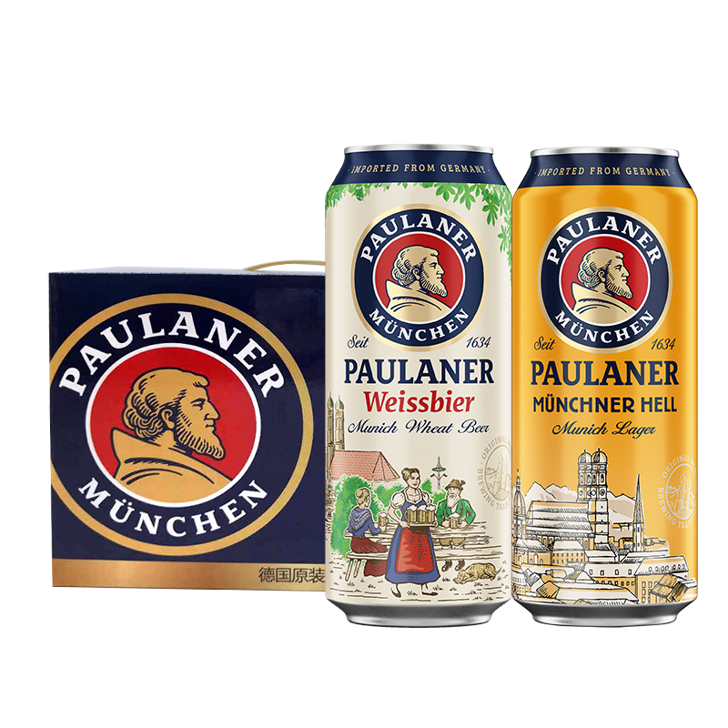 保拉纳/柏龙(PAULANER) 啤酒混合装礼盒 500ml*12罐 黄白轰趴组合装 德国进口 -