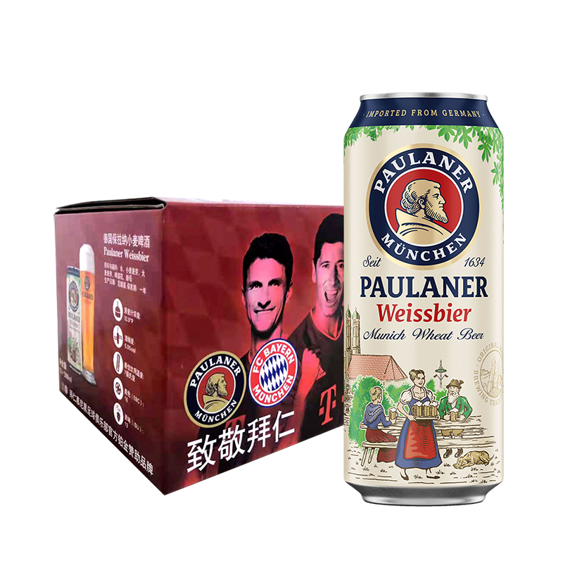 保拉纳/柏龙(PAULANER) 啤酒小麦拉罐 500ml*12罐 礼盒装 拜仁球迷限定版 德国进口 -