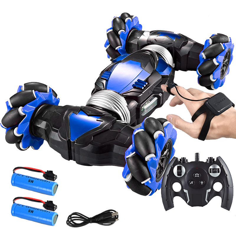 【双遥控双形态】手表手势感应扭变车特技攀爬遥控汽车变形车充电四驱漂移越野车男孩儿童玩具新年礼物 炫蓝(双遥控双形态)双电续航90分钟 -